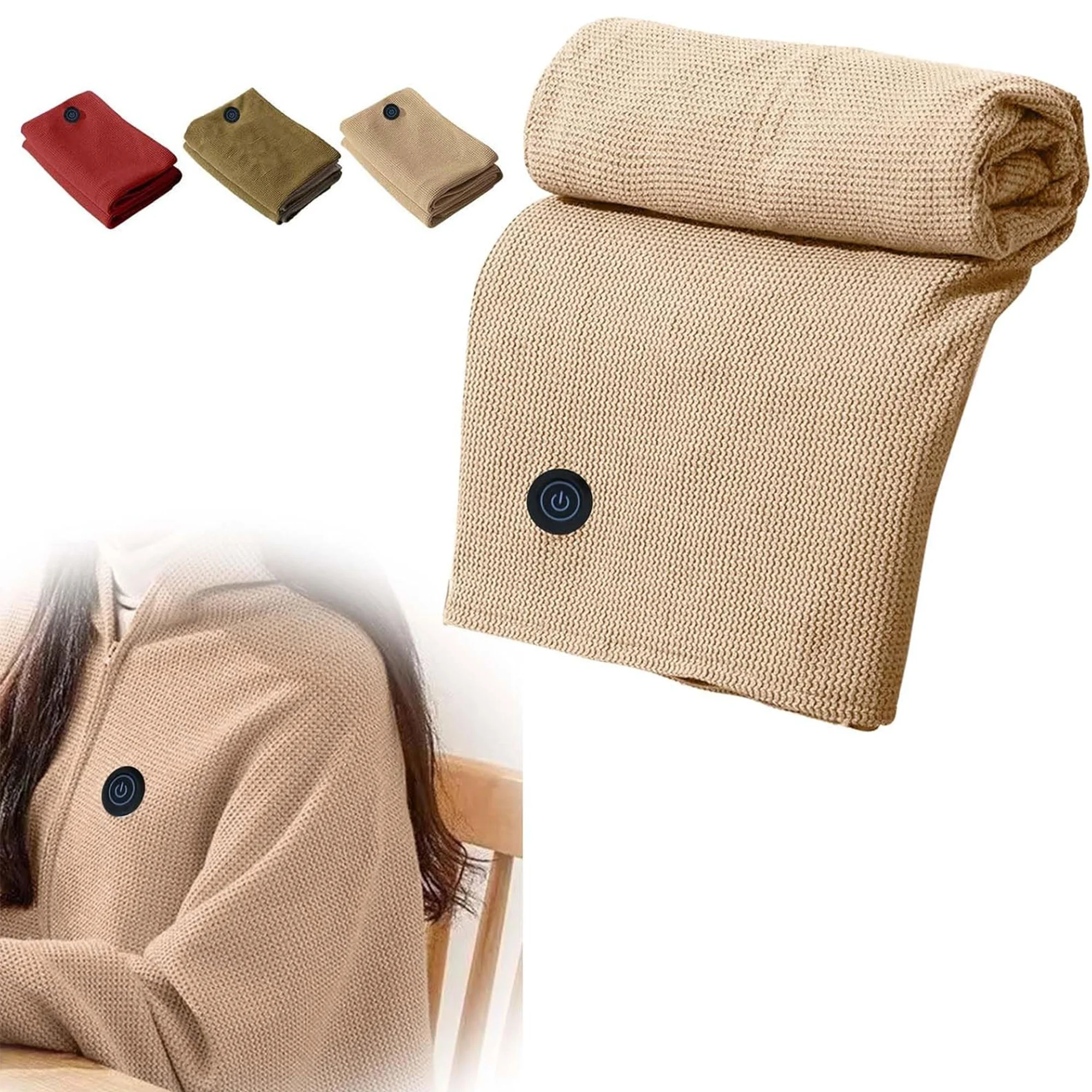 بطانية حرارية قابلة للارتداء تعمل عبر USB، خفيفة ومريحة، تمنحك دفء سريع أثناء الجلوس أو العمل أو القراءة. مناسبة للمنزل والمكتب